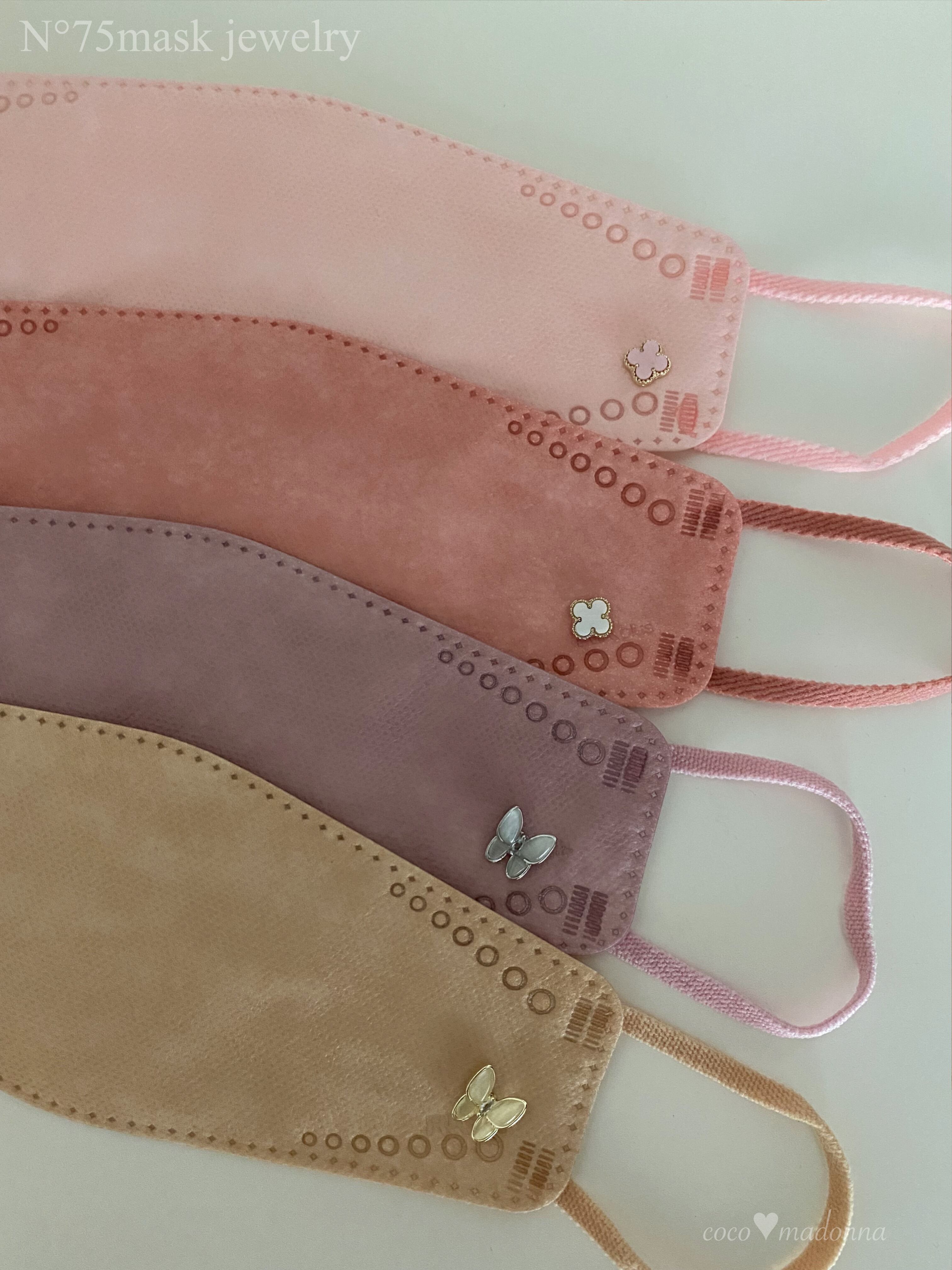 不織布マスクや布マスクに、マスクジュエリーを合わせることでエレガントな雰囲気に。